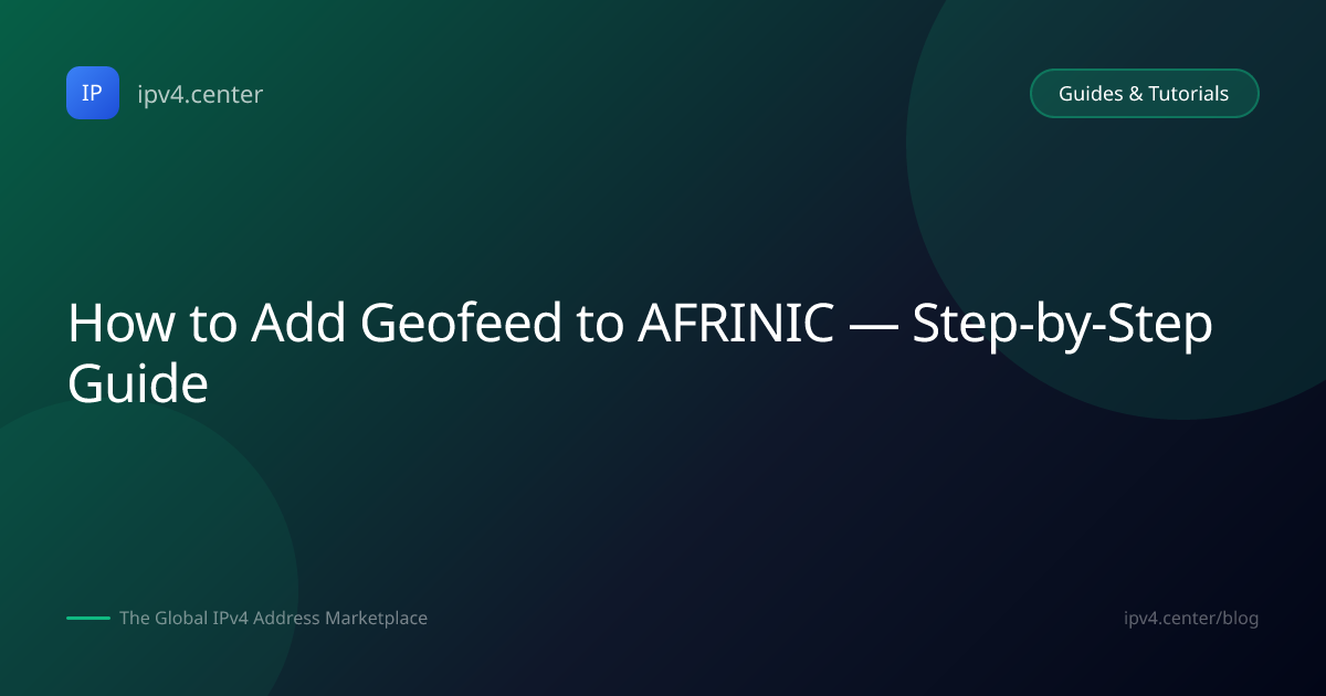 AFRINIC (African Network Information Centre) supports geofeed through the remarks: attribute on inetnum and inet6num objects. The process is similar to other RIRs that use the RPSL (Routing Policy Specification Language) format.